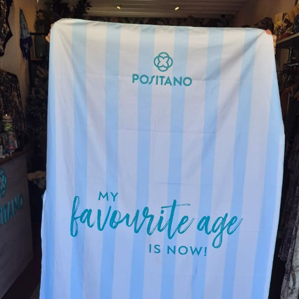 Exclusive, LIMITED EDITION Positano-branded towel - made from 100% recycled micro fibre.